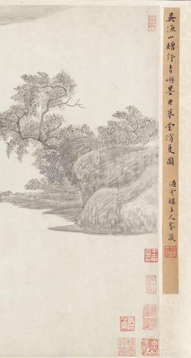 高士观瀑瀑布图 如果我们照着何慕文所列的每幅画作顺势看下去,我们会发现中国画从宋到清的一个趋势,那就是文人画家逐渐抛弃技法,越来越追求心中的感觉,浓郁的诗艺,以及最完备的哲学与玄学的观念(苏立文语)。这当然受到了禅宗的思想影响,但更多的可能是与文人将绘画看成抒发自我的方式有关。 从何慕文所写的类型说明,我们就可以很好的看到这一趋势,如“笔简意长”(南宋夏珪《山市晴岚图》)、“私密空间”(南宋(传)阎次于《松鹤隐棲图》)、“概念山水”(元赵原《仿燕文贵范宽山水图》)、“避世玄想”(元王蒙《素庵图》)、“山水自况”(清吴历《墨井草堂消夏图》)等。