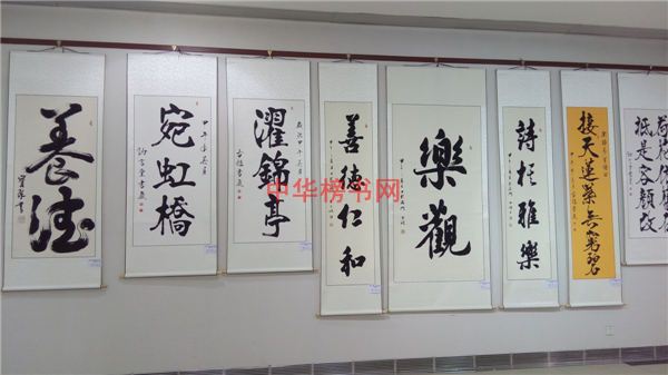前来观展的榜书爱好者在一幅幅精美作品前驻足