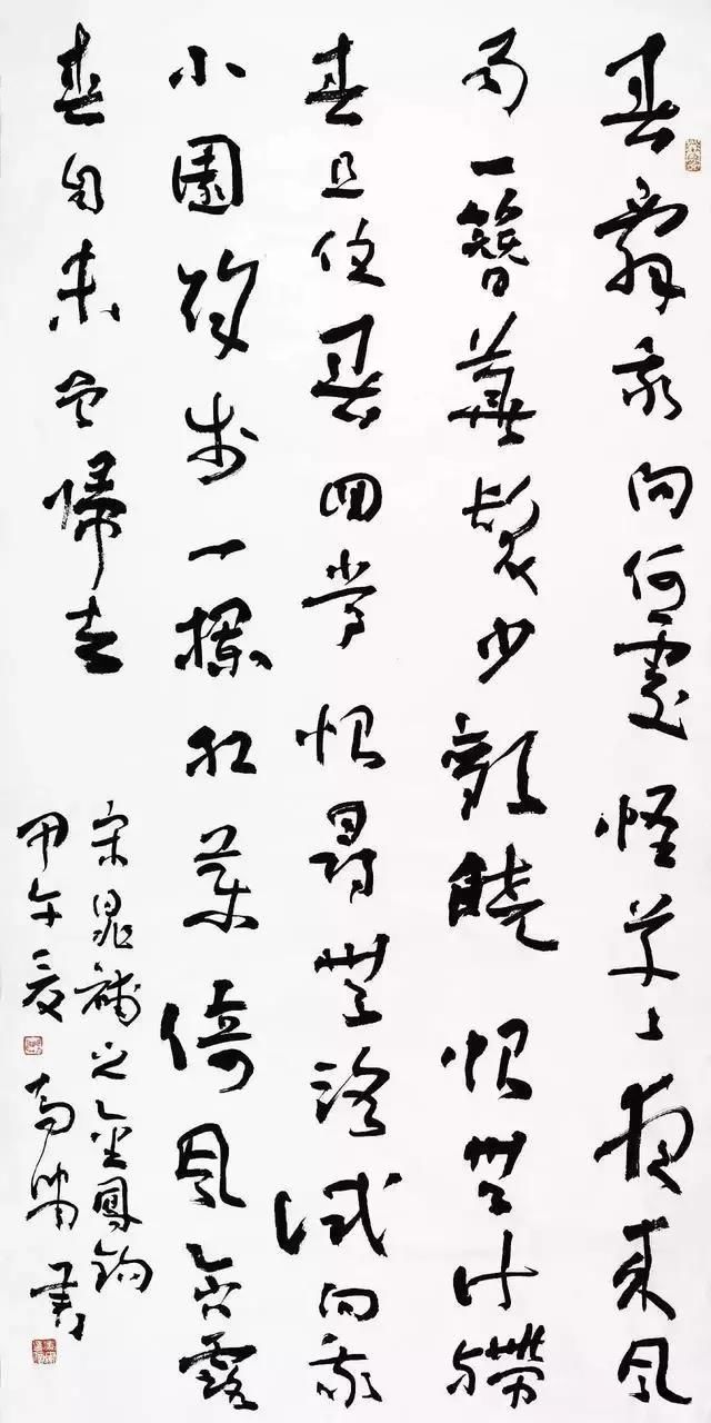 马啸 书法 当然,通过展览提高知名度、结交更多的人士毫无疑问也是其初衷之一。然而,据我观察,其目标至多实现了一半,而且这些目标大多是非艺术的;至于创作水平,常给人原地踏步甚至虚脱之感。 故此,这些年我时常怀疑这样一种美好愿望的现实性:多举办书展自然会提高作者的书艺水平。相反,据我看来,频繁的展事活动,会使人长期处于兴奋状态而不能理智地面对、反省自己的创作。 这就好比一个演员、一个剧团,只热衷于舞台演出,而对台下排练或基本功的训练则被置之脑后,所以在上一场演出中出现的问题很自然会在下一场演出中重现(而且多数是原原本本的重现)。而所谓展览之中或之后的“作品讨论会”之类的活动,大多数情况是没有实际意义的。