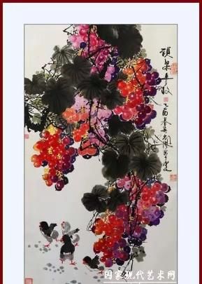 当代画坛,许多画家因施彩无意归艳雅,绘成艳俗,就让花鸟画创作成为呆板复制结果,不是成功,多属败笔。所以周忠法的花鸟作品,无论牡丹还是梅图,无论是幽兰还是葡萄,都能施彩而无惧,终因彩韵而闻名,这是胆识也是造诣,让我们仍旧拥有回望风华典雅的品韵机会,这相当可贵,也是艺术欣赏者的幸运。同时他的书法也是师从古韵深修碑帖的磨砺造诣,诸书皆成,以行草为功高惬意,笔墨取法二王自由,渡成米芾泼辣,取之法度,写宋之韵质,又后源明清,参意了董其昌书法调墨显动逸,吴昌硕书法注墨生圆厚的技法精华,汲取诸门,独树一帜,他不但把书法写出了动逸形观,并且酝酿出了可贵的精气神形韵双成绘丹青,恣意挥笔卓翰墨。