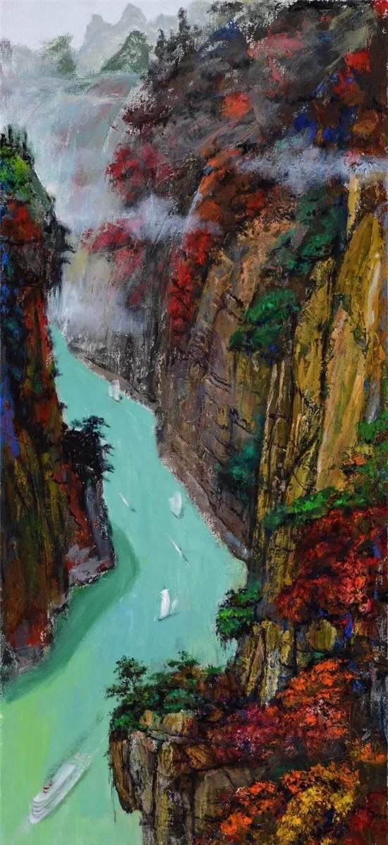 作品《峡江之晨》尺寸:80X80CM创作日期:2012年