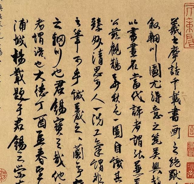 杨载题跋:“羲之摩诘,千载 书画 之绝,独兰亭序、辋川图尤得意之笔。吴兴赵承旨以书画名当代,评者谓能兼美乎二公。兹观鹊华秋色一图,自识其上,种种臻妙,清思可人,一洗工气,谓非得意之笔可乎。诚羲之之兰亭,摩诘之辋川也。”